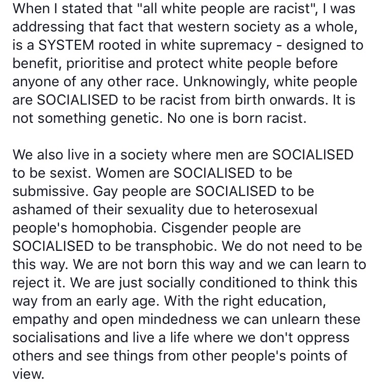 ‘Come see me when you realise that racism isn’t learned, it’s inherited and consciously or unconsciously passed down through privilege.