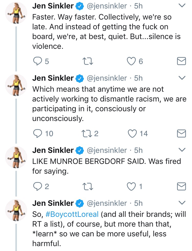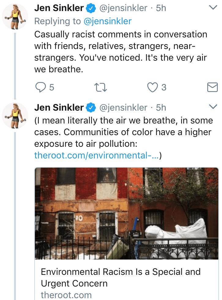She was also defended by Jen Sinkler, former Team USA Rugby player, who had her own Twitter thread of ridiculous racism.