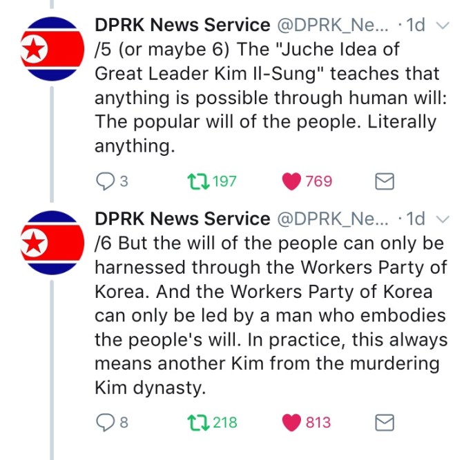 Realize the tweets I’m linking took less than 30 sec to find…a lot of love for a Totalitarian’s sister.