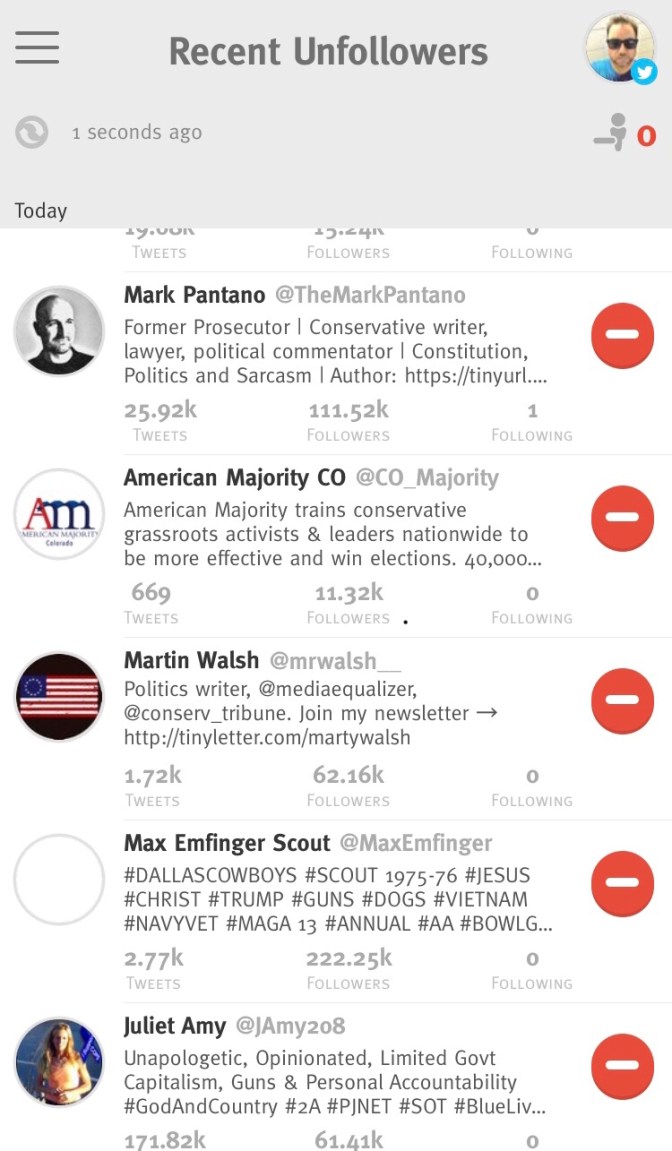 I started to go down the list of unfollowers using my Crowdfire App that’s synced to my account. I began to see a running theme.