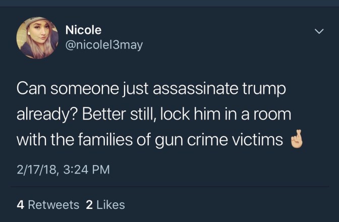 So from what I can tell, an assassination of a sitting president is something Twitter seems to be A-OK with. If you’ve criticize the motives behind some of the high school activists, your account is locked. If you’ve been critical of radical Islam, you’re locked out. But If you publish porn on Twitter, not to worry. You weren’t affected.